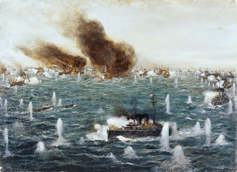 “US Warships in Edo harbor” At the time the the various classes of Japan began to shift in their power dynamics; many of the once mighty Samurai class becoming poorer than the farmers and merchants they used to look down upon. While many benefited from the changes, discontent stirred in the southern portion of the nation. The prefectures of Choshu and Satsuma took up arms against the Shogunate, and with limited outside assistance from the British, overthrew it and restored the emperor as head of the nation. A young Emperor Meiji set about limiting foreign influence, but did not restore the samurai class to a position of importance. He did however allow many of its members positions in his government and armed forces. After putting down the Satsuma Rebellion, he went on to oversee his nation’s rise to international prominence. The incredible feats of the Japanese in the Russo-Japanese War, and the utter destruction of the Russian Navy during the Battle of Tsushima Strait secured their place as a world power, avoiding the fate of a fractured and European dominated China.